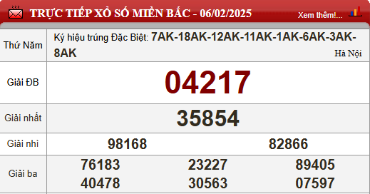 ผลหวยฮานอยวันนี้ 6/2/68 ผลหวยฮานอยปกติ